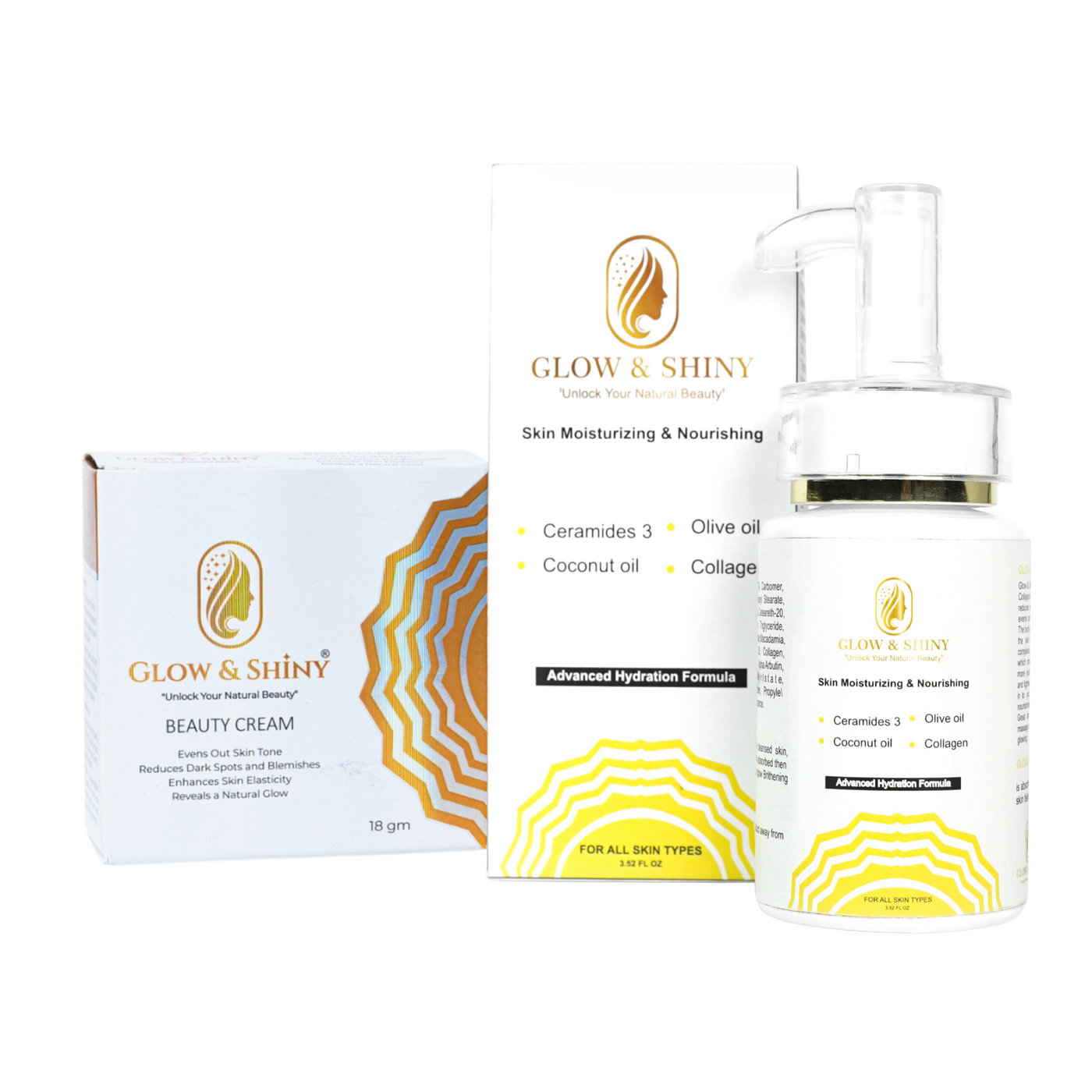 Give your skin the everyday care it deserves with Glow & Shiny’s moisturizing and brightening bundle. This duo is designed to hydrate, soften, and revive dull skin, bringing back a healthy, natural glow without feeling heavy or oily.