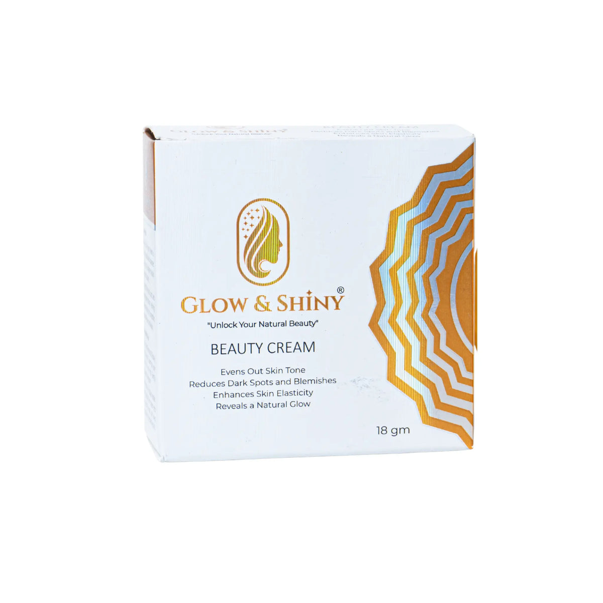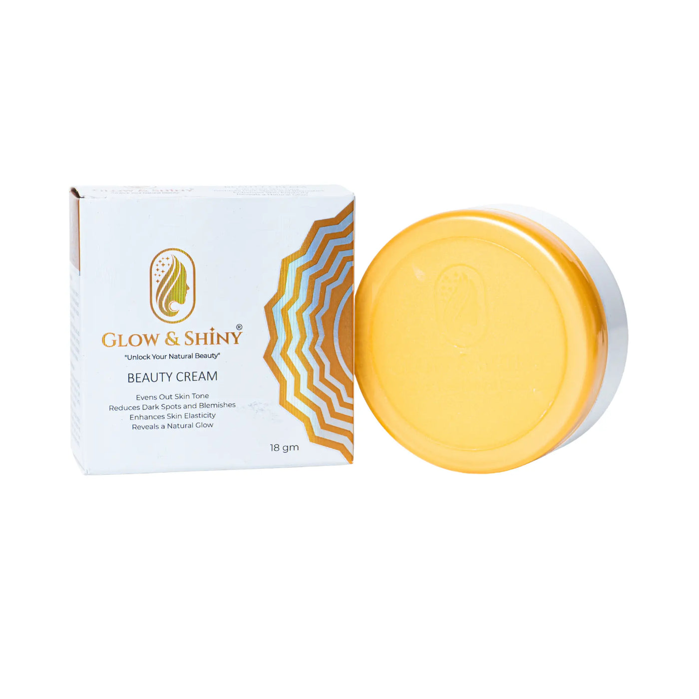 Glow Shiny Beauty Cream evens skin tone, reduces dark spots and blemishes, enhances skin elasticity, and unveils a natural radiant glow for a flawless complexion